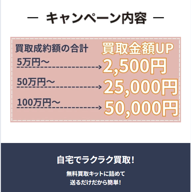 また、事前にLINEで写真を送るだけの簡単査定にも対応しています。スマートフォンで商品を撮影して送るだけで、おおよその査定額を確認できるため、「いくらで売れるのか知りたい」という方にも便利なサービスです。