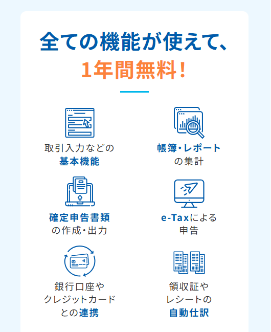 料金面でも導入しやすく、初年度無料で利用できるプランが用意されているため、開業直後や副業段階でもコストを抑えて会計管理をスタートできます。必要な機能を備えながらもシンプルで使いやすい設計となっており、「できるだけ手間をかけず確定申告を終えたい」という方に適したサービスです。()