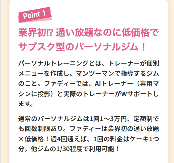 全国に店舗を展開しており、駅近の立地も多いため通いやすいのも特徴です。AI技術とパーソナルトレーニングを組み合わせた新しいフィットネスとして、健康づくりやダイエット目的で利用する方が増えています。