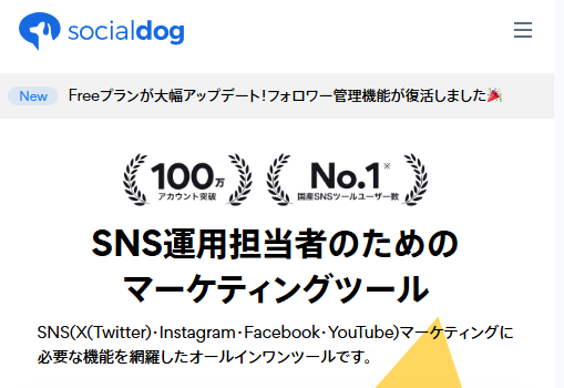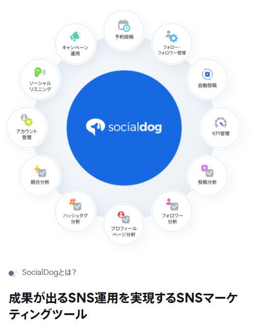 **SocialDog(ソーシャルドッグ)**は、SNS運用に必要な機能を一括で管理できるオールインワンツールです。まずは公式サイトで機能やプランをチェックして、効率的なSNS運用を始めてみてください。