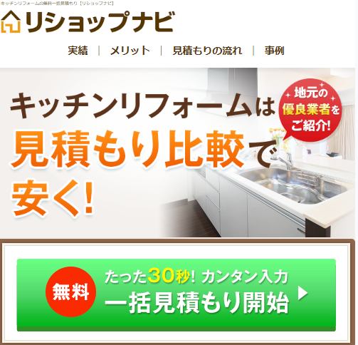 リショップナビは、キッチンリフォームをはじめとした住宅リフォームを効率よく進められる一括見積もりサービスです。まずは公式サイトで内容をチェックして、納得できるリフォームをスタートしてみてください。