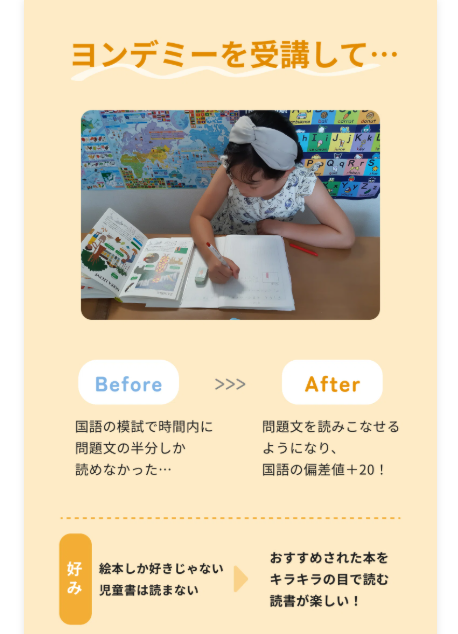 読書は、思考力や表現力を育てる重要な学びの一つです。ヨンデミーを活用することで、楽しみながら読書習慣を身につけ、学力の土台を育てることができます。
