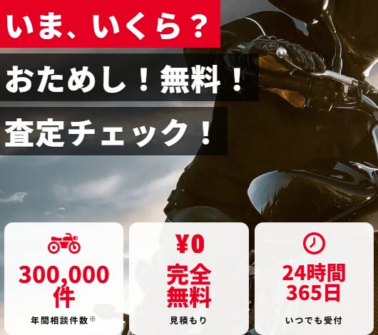 バイク王は、出張査定から売却までをスムーズに行えるバイク買取サービスです。まずは公式サイトで無料査定を試して、愛車の価値をチェックしてみてください。